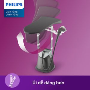 Chỉ cần đặt vải lên ván ủi và để mặt đế ủi hơi nước lên vải là bạn đã có thể ủi phẳng quần áo hiệu quả từ cổ đến đuôi áo/gấu quần với tư thế thoải mái nhất nhờ nút điều chỉnh chiều cao của bàn ủi. Chẳng những thế, với kích thước gọn gàng bạn có thể dễ dàng cất gọn bàn ủi, tiết kiệm không gian cũng như di chuyển đến bất cứ chỗ nào nhờ tích hợp bánh xe.