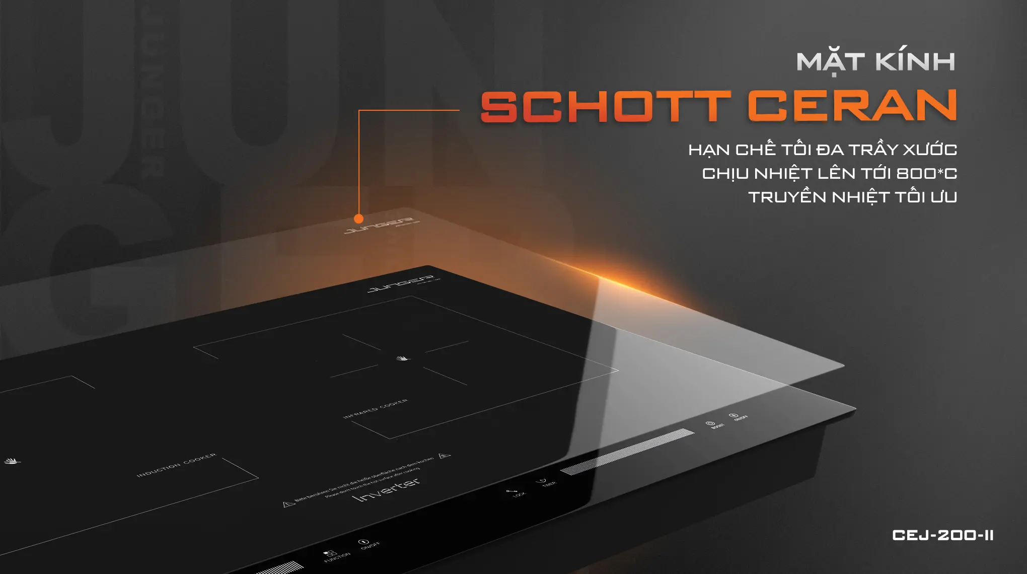 Nổi bật so với các sản phẩm cùng loại trên thị trường, Junger CEJ-200-II được trang bị mặt kính cao cấp Schott Ceran của Đức với vô vàn ưu điểm vượt trội: