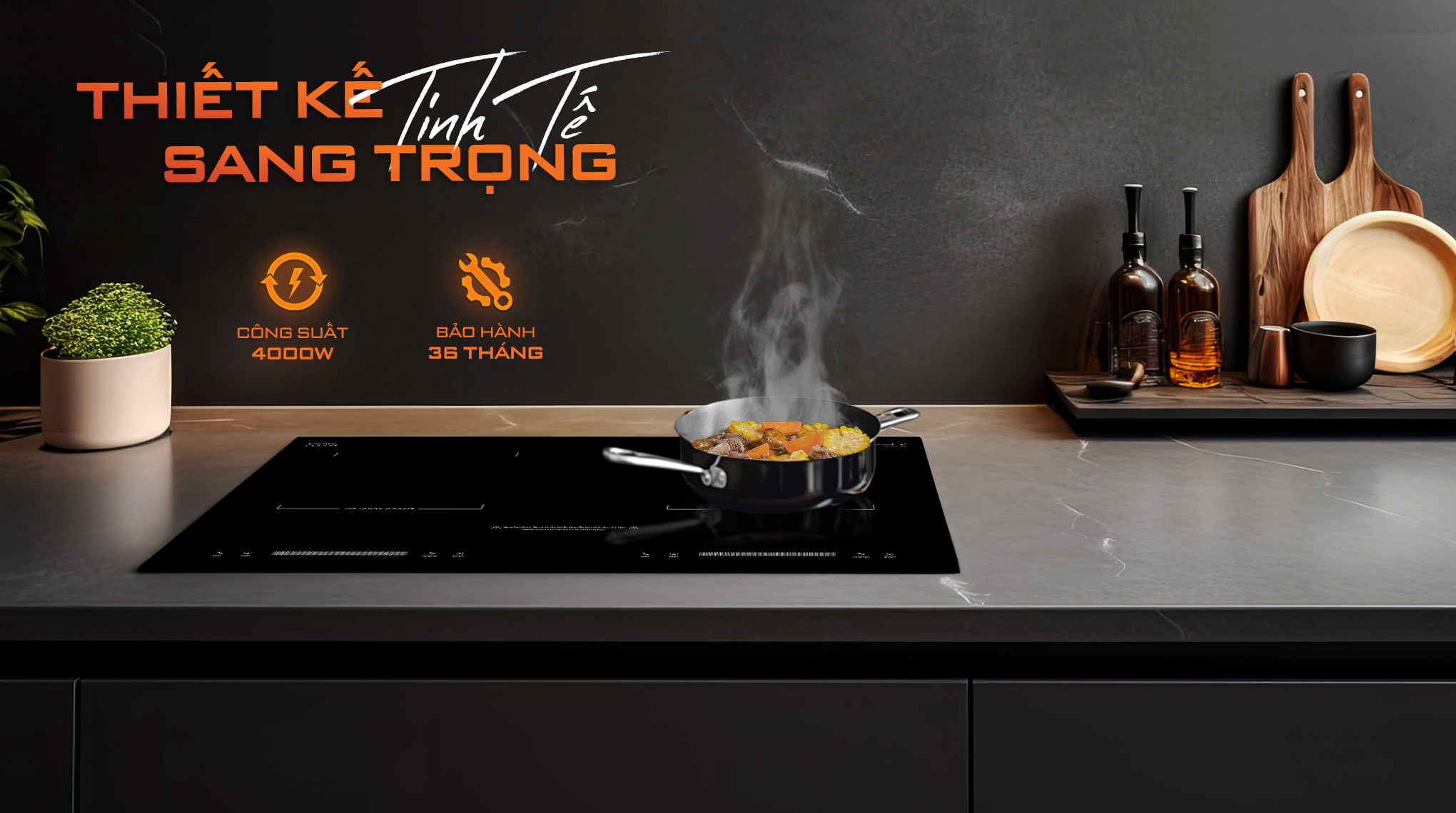 • Tính năng truyền nhiệt định hướng, chỉ nóng vùng nấu, có thể chạm tay xung quanh mà không nóng.