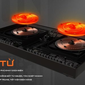 • Toàn bộ mâm từ được đặt trên tấm hợp kim cách nhiệt có tác dụng ngăn nhiệt truyền ngược vào bo mạch điện tử, chống bắt từ ngược và hấp thụ nhiệt, giúp tản nhiệt nhanh và làm mát mâm từ và các linh kiện bên trong.
