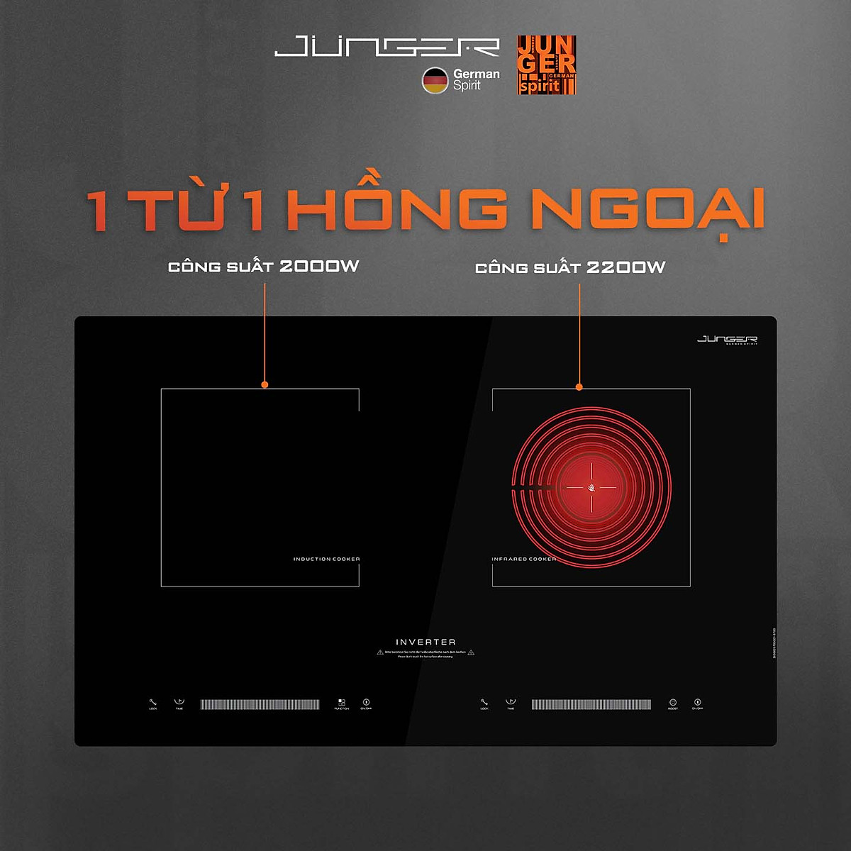 Bếp điện từ hồng ngoại Junger SIS-66 được thiết kế 2 vùng nấu riêng biệt toát lên vẻ độc đáo và sang trọng. Với 1 vùng bếp từ và 1 vùng bếp hồng ngoại, Junger SIS-66 có thể sử dụng cho tất cả các loại vật liệu khác nhau giúp công việc nấu nướng nhanh chóng và dễ dàng hơn bao giờ hết.