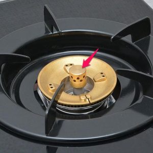 Bếp gas đôi Rinnai RV-970(GL) sử dụng đầu đốt bằng đồng thau rất được ưa chuộng vì độ bền cao, cho ngọn lửa xanh mạnh giúp nấu chín thức ăn nhanh mà không làm ố vàng đáy nồi, chảo (Xem thêm Phân loại các chất liệu đầu đốt của bếp gas). Bếp sử dụng đầu đốt thông thường cho ngọn lửa to, tỏa đều với nhiệt độ ổn định để thức ăn chín đều. Đầu đốt còn có tính năng tiết kiệm gas nên lượng gas tiêu thụ chỉ ở mức 0.46 kg/h. (Xem thêm Phân loại các loại đầu đốt của bếp gas).