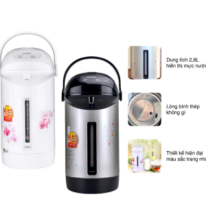 Bình hoạt động với công suất 670W cho hiệu quả đun nước sôi rất nhanh, bạn không phải mất thời gian chờ đợi, tiết kiệm được tối đa điện năng tiêu thụ. Bình có dung tích 2.8L phù hợp cho những gia đình có ít thành viên. Nước trong bình được rót ra nhờ vào bơm hơi. Khi nhấn nút bơm thì hơi nén vào bình và đẩy nước ra ở vòi giúp bạn thuận tiện hơn trong việc lấy nước và hạn chế tối đa nguy hiểm từ nước sôi.