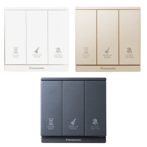 Bộ 3 công tắc 3 chức năng Panasonic với đèn báo có dấu hiệu “Không làm phiền”, “Dọn phòng” và “Vui lòng đợi”. Được thiết kế nhỏ gọn, dễ dàng sử dụng, thân thiện với người dùng. Đèn báo chủ yếu sử dụng trong các nhà máy, nhà hàng khách sạn. Có độ bền cao, lắp đặt thuận tiện, tiết kiệm mọi chi phí cho các công trình.