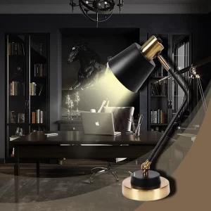 Đèn bàn E27 cổ điển được thiết kế màu vàng đen theo phong cách cổ điển sang trọng, đem lại cảm giác thanh lịch và đẳng cấp cho không gian. Điểm nhấn của thiết kế này là khả năng điều chỉnh chiều cao và góc chiếu của đèn ở hai vị trí khóa vặn khác nhau, cho phép người sử dụng tùy chỉnh ánh sáng theo ý muốn.