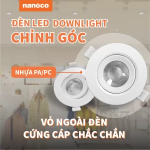 Đèn Downlight chỉnh góc Nanoco thân đèn được làm từ chất liệu nhôm nhựa, thấu kính và nhựa PC trong suốt, được điều chỉnh góc xoay tối đa 20 độ, tùy thuộc vào mục đích sử dụng mà điều chỉnh góc xoay phù hợp. Với góc chiếu 38 độ thích hợp cho chiếu những điểm trưng bày sản phẩm, tranh treo tường… Được thiết kế đa dạng với các màu ánh sáng trắng, trung bình, và ánh sáng vàng tạo cảm giác nhẹ nhàng và thoải mái cho mắt không gây chói mắt, bảo vệ mắt. Công suất và điện thế sử dụng 7W/220V và tuổi thọ sản phẩm lên đến 23.000 giờ.