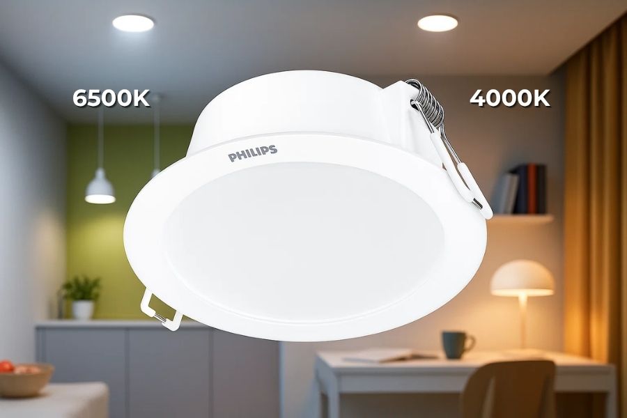 Tùy chọn nhiệt độ màu 4000K và 6500K mang đến sự linh hoạt trong ứng dụng: ánh sáng trung tính cho cảm giác dễ chịu, thư giãn; ánh sáng trắng mát hỗ trợ làm việc hiệu quả hơn trong các không gian chức năng như bếp hoặc góc học tập.