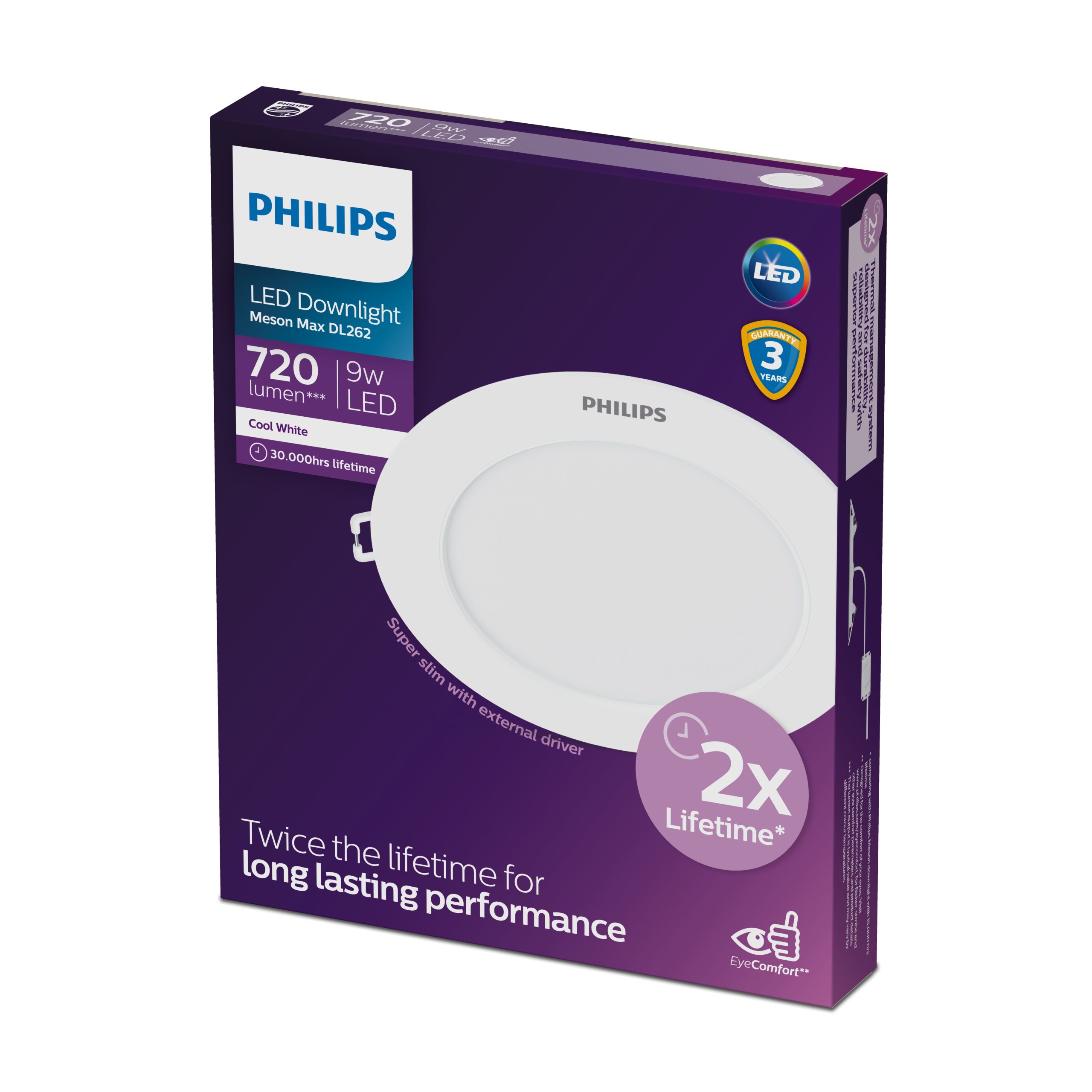 - Sự nâng cấp đáng giá nhất của bóng đèn LED âm trần siêu mỏng Philips Meson Max DL262 EC RD 125 9W 40K GM chính là tuổi thọ 30.000 giờ, gấp đôi tuổi thọ đời trước , mang lại sự yên tâm cho khách hàng khi sử dụng về lâu về dài