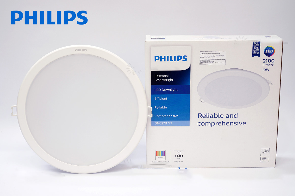 Bộ đèn Led downlight âm trần tròn Philips DN027B G3 LED19/CW 19W 220-240V D200 RD 6500K được thiết kế với kiểu dáng tròn, khoét trần 200mm, có độ bền cao và đặc biệt tuổi thọ cao lên đến 30.000 giờ. Đèn downlight Led Philips DN027B G3 ra mắt cải tiến tiết kiệm điện hơn so với DN027B G3 với công suất chỉ 19W, giảm chi phí tiền điện.
