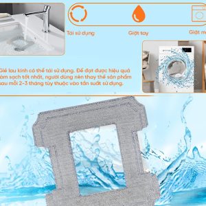 Sản phẩm có kích thước 260x 260x 50mm, mang lại diện tích tiếp xúc rộng, làm sạch hiệu quả trên bề mặt kính lớn. Thao tác lắp đặt cũng rất đơn giản, người dùng có thể thực hiện dễ dàng không tốn sức. Với khả năng tái sử dụng đến 40 lần, bạn có thể giặt sạch và phơi khô bằng tay hoặc máy, giúp giẻ lau luôn sạch sẽ, hạn chế sự sinh sôi và phát triển của vi khuẩn và nấm mốc, từ đó đảm bảo hiệu suất làm việc của robot.