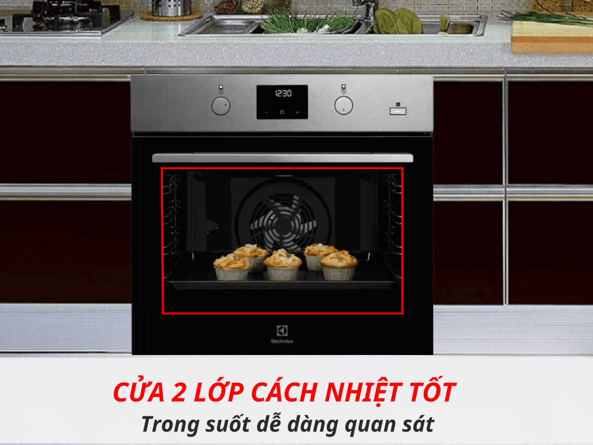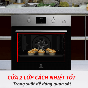 Bên trong lò Electrolux có 2 giá đỡ 2 bên để bỏ khay nướng vào. Thành lò nướng dày, có cấu tạo cách nhiệt tốt hạn chế sự thất thoát nhiệt ra bên ngoài giúp tiết kiệm điện năng và an toàn cho người dùng.