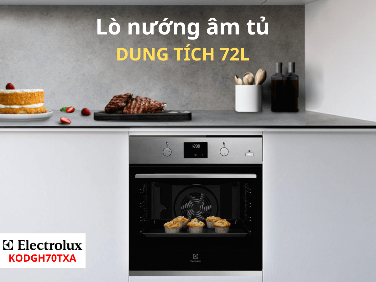 Lò nướng có dung tích là 72 lít đáp ứng tốt nhu cầu cho mọi gia đình Việt.