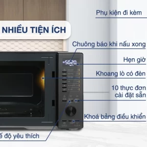 – Chức năng chính: rã đông, hâm nóng, nấu, nướng. Bên cạnh đó, lò còn có chức năng ninh, tan chảy, thực đơn nấu tự động.