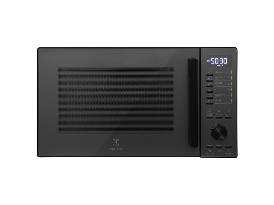 – Lò vi sóng Electrolux sử dụng bảng điều khiển nút nhấn kết hợp nút vặn có chú thích Việt – Anh rõ ràng, dễ tùy chỉnh.