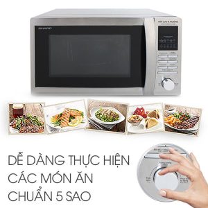 Lò vi sóng Sharp R-C825VN(ST) với chức năng nướng sử dụng đối lưu nhiệt có 5 mức điều chỉnh công suất với nhiệt độ lên đến 230 độ C, luồng không khí nóng được đối lưu khắp bên trong lò nhờ hệ thống quạt, giúp thực phẩm chín nhanh và đều hơn. Lò vi sóng với đa dạng chế độ nấu, trang bị 10 chế độ tự động như: hâm nóng, khoai tây, thịt, rau củ quả, cá, mì ống, súp, bánh, pizza, gà. Lò kết hợp cho phép bạn kết hợp giữa năng lượng vi sóng và nướng hoặc vi sóng và đối lưu vô cùng tiện lợi.