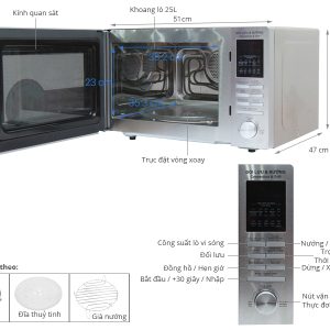 Lò vi sóng trang bị bảng điều khiển bằng tiếng Anh – Việt và màn hình LED hiển thị rõ ràng, giúp cho người sử dụng có thể theo dõi và quan sát quá trình nấu nướng. Sau khi hoàn tất việc nấu nướng lò sẽ có chuông báo kết thúc, lò vi sóng còn trang bị chức năng khóa bảng điều khiển khi nhà bạn có trẻ em rất tiện ích.