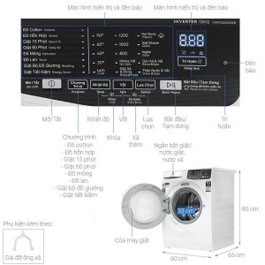 – Kiểu dáng: máy giặt cửa trước – lồng ngang với kết cấu gọn gàng, vững chắc kết hợp với gam màu trắng tươi sáng phối hợp hài hòa với các món đồ nội thất khác trong không gian sống của gia đình.