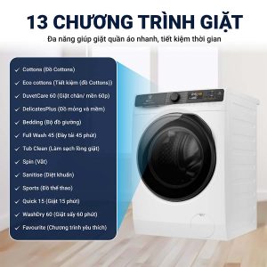 – Công nghệ giặt sấy tích hợp: sau khi hoàn tất chu trình giặt, máy sẽ tự động chuyển sang chế độ sấy mà không cần phải lấy quần áo ra ngoài, loại bỏ bước chuyển đồ giữa hai máy riêng biệt giúp tiết kiệm thời gian, đảm bảo quần áo được xử lý liên tục từ giặt đến sấy khô.