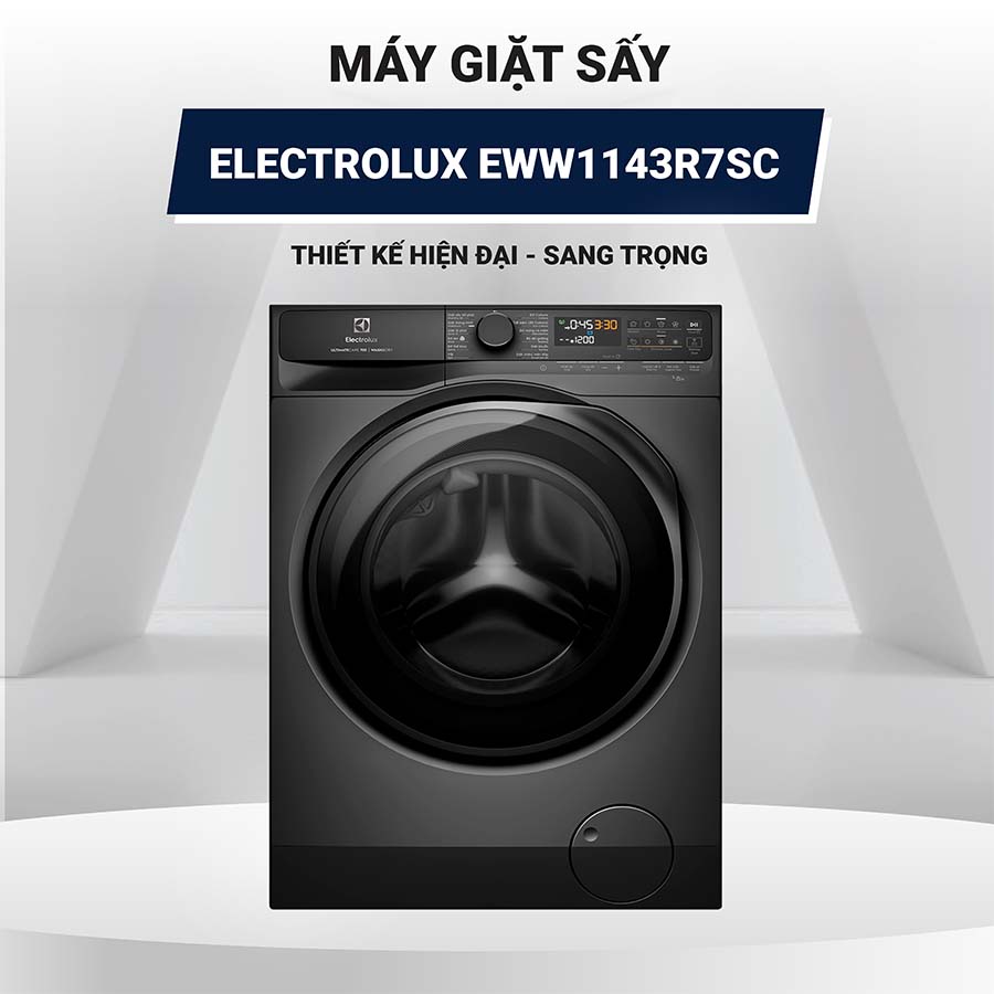 Máy giặt sấy Electrolux UltimateCare 700 Inverter giặt 11 kg – sấy 7 kg EWW1143R7SC có khả năng giặt và sấy trên cùng một thiết bị, phù hợp với gia đình trên 7 thành viên. Sản phẩm có thiết kế hiện đại, màu sắc sang trọng cùng đa dạng chương trình hoạt động, cho phép bạn điều khiển máy giặt từ xa thông qua ứng dụng Electrolux. Công nghệ Hygienic Care loại bỏ vi khuẩn hiệu quả sau mỗi lần giặt, hòa tan chất giặt không còn lượng cặn trên quần áo với UltraMix,… cùng nhiều tiện ích thông minh khác.