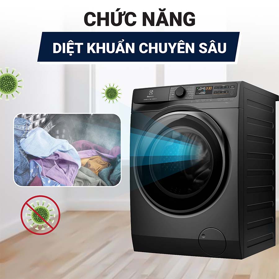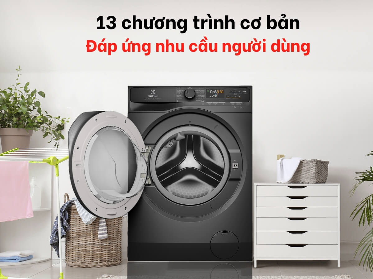• Tiện ích: Điều khiển máy giặt từ xa thông qua ứng dụng Electrolux, Vệ sinh lồng giặt, Thêm quần áo khi máy đang giặt, Sấy trên mức độ khô mong muốn, Sấy dựa trên thời gian mong muốn,, Lưu chương trình yêu thích, Khóa trẻ em, Hẹn giờ giặt kết thúc, Giặt sơ, Có sấy, Chỉnh số vòng vắt, Chỉnh nhiệt độ nước, Loại bỏ vết ố Stain Pro, Hygienic Care – Diệt khuẩn sau mỗi lần giặt, Tùy chọn mức độ bẩn của quần áo