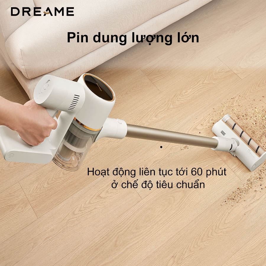 Máy hút bụi cầm tay không dây Dreame R10 2025 được trang bị viên pin dung lượng lớn 7 x 2.500mAh, cho phép hoạt động liên tục đến 60 phút ở chế độ thường. Người dùng có thể dọn dẹp cả cảm hộ hay ngôi nhà nhiều tầng chỉ với 1 lần sạc. Đây là ưu thế nổi bật của máy hút bụi cầm tay không dây Dreame R10 2025 để bạn tiết kiệm thời gian và không lo gián đoạn khi vệ sinh.