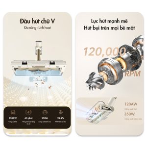 Máy hút bụi cầm tay không dây Dreame R10 2025 được trang bị động cơ không chổi than tốc độ cao 120.000 vòng/phút, tạo ra lực hút mạnh mẽ 120AW tương đương 20.000Pa. Nhờ đó, máy có thể loại bỏ bụi mịn, tóc rụng, lông thú cưng và mảnh vụn trên nhiều bề mặt khác nhau chỉ sau 1 vài lần di chuyển. Đây là điểm mạnh giúp máy vượt trội hơn so với nhiều dòng máy hút bụi cầm tay cùng phân khúc.