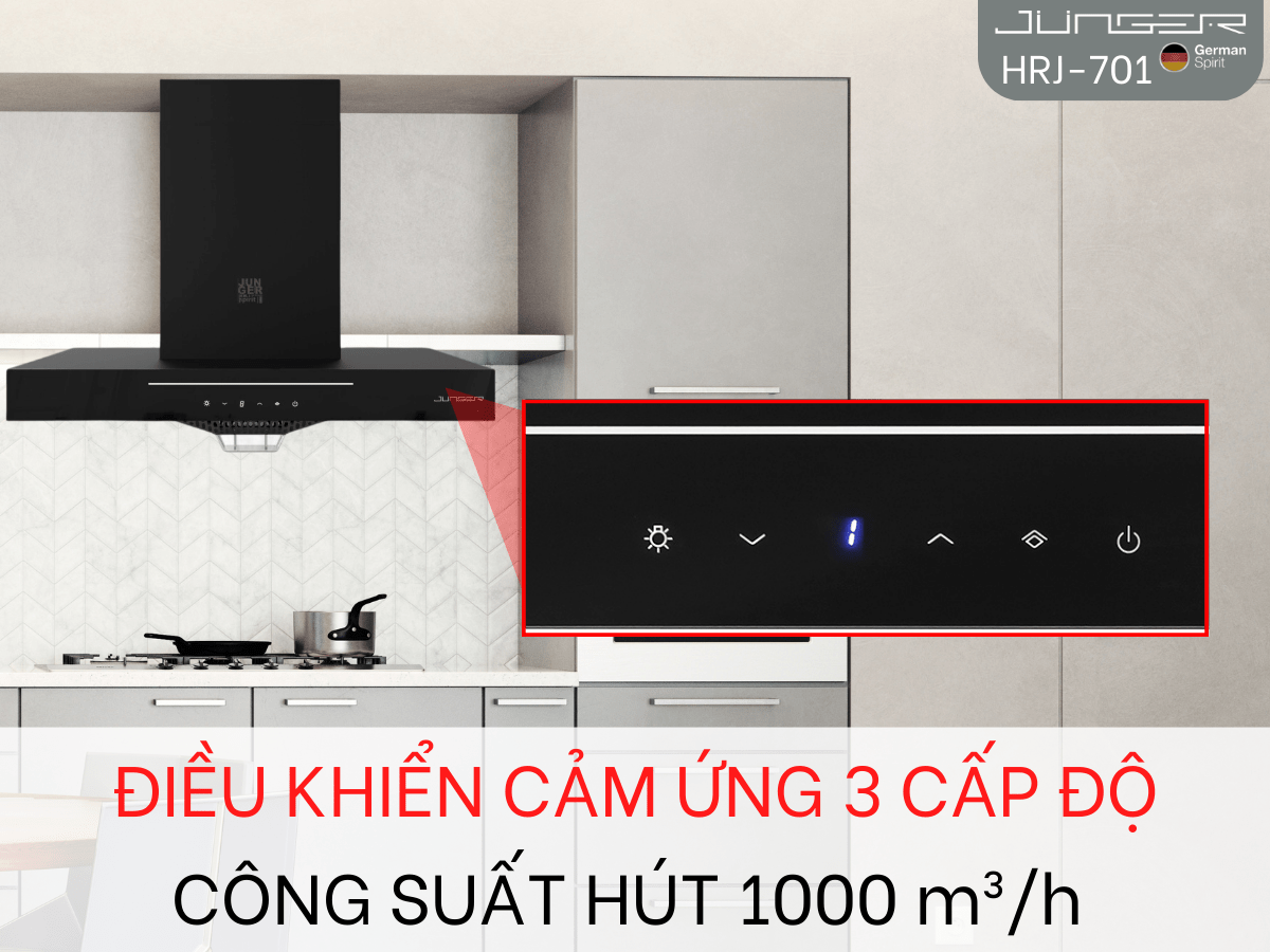 Junger HRJ-701 được trang bị động cơ AC thế hệ mới chống hơi nước siêu yên tĩnh kết hợp quạt gió động cơ dạng tuabin phát ra âm thanh nhỏ 53 dB ngay cả khi hoạt động ở mức công suất mạnh nhất. Lực hút 1000m3/h nhanh chóng làm sạch bầu không khí trong khu vực nấu nướng, loại bỏ đến 99% mùi dầu mỡ và mùi thức ăn khó chịu.