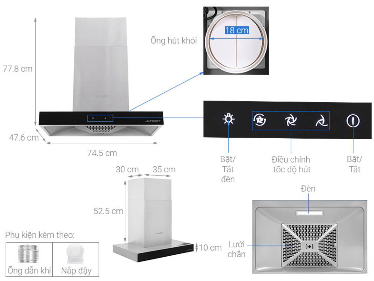 Các thành phần của máy hút mùi Junger HRJ-75 đều được nghiên cứu và sử dụng vật liệu bền bỉ, chắc chắn đảm bảo vận hành êm ái, ổn định trong suốt thời gian dài.