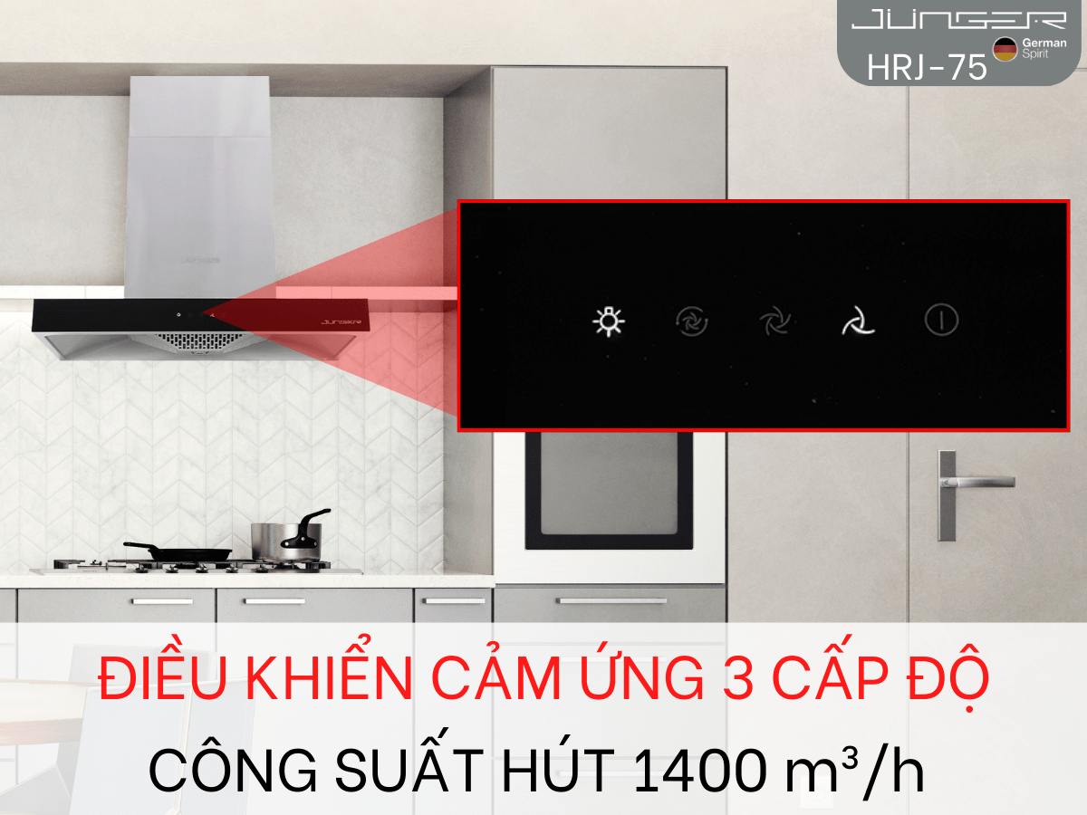 Junger HRJ-75 sở hữu động cơ AC thế hệ mới chống hơi nước siêu yên tĩnh kết hợp quạt gió động cơ dạng tuabin phát ra âm thanh dưới 53dB ngay cả khi hoạt động ở mức công suất mạnh nhất. Lực hút 1400m3/h nhanh chóng làm sạch bầu không khí trong khu vực nấu nướng, loại bỏ đến 99% mùi dầu mỡ và mùi thức ăn khó chịu.