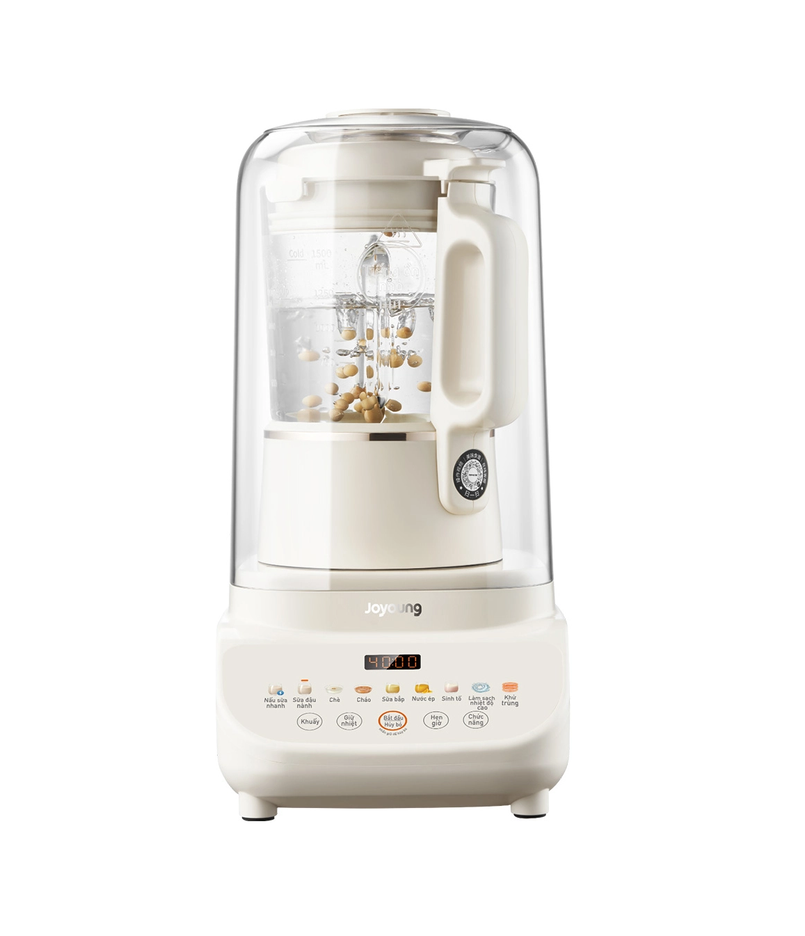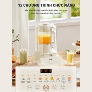 Thiết bị sở hữu 12 chức năng hiển thị bằng nút cảm ứng trên thân máy, bao gồm: 7 chế độ nấu (Nấu sữa nhanh, Sữa đậu nành, Chè, Sữa bắp, Cháo, Nước ép, Sinh tố) và 5 chức năng nâng cao (Làm sạch nhiệt độ cao, Khử trùng, Khuấy, Giữ nhiệt, Hẹn giờ), mang lại sự tiện lợi tối đa cho người dùng trong quá trình chế biến món ăn dinh dưỡng tại nhà.