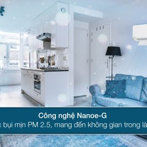 Máy lạnh Panasonic được thiết lập công nghệ Nanoe-G có thể loại bỏ được những hạt lơ lửng có trong không khí kể cả hạt bụi mịn PM 2.5 với hiệu suất lên tới 99%, trả lại cho bạn gian phòng trong lành, góp phần bảo vệ sức khỏe hô hấp của mọi thành viên trong gia đình.