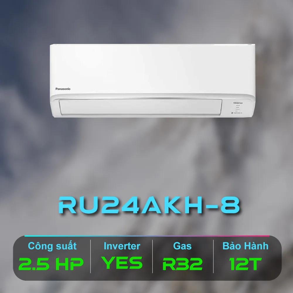 Máy lạnh Panasonic Inverter 2.5 HP CU/CS-RU24AKH-8 là mẫu máy lạnh 1 chiều hoạt động mạnh mẽ với công suất 2.5 HP, động cơ Inverter, chế độ ECO tích hợp A.I tiết kiệm điện, lọc không khí hiệu quả với công nghệ Nanoe-G, dùng bền bỉ với lá tản nhiệt phủ BlueFin chống ăn mòn.