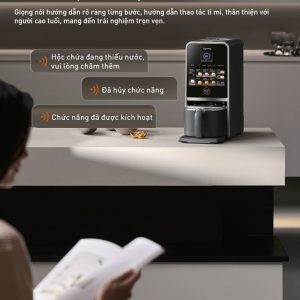Bên cạnh đó, màn hình phụ LCD TFT 2.4 inch hiển thị thời gian nấu, trạng thái hoạt động của máy và thông báo lỗi kèm hướng dẫn khắc phục. Nhờ vậy, người dùng dễ dàng theo dõi và xử lý kịp thời trong quá trình sử dụng.