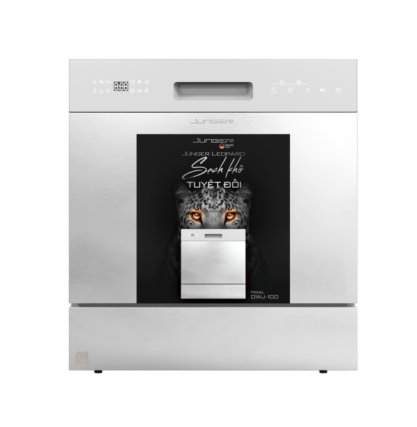 Máy rửa bát Junger Leopard DWJ-100 được sản xuất nghiêm ngặt trên dây chuyền công nghệ Junger hiện đại chuẩn Đức. Thuộc dòng sản phẩm Junger Leopard báo xám mạnh mẽ làm sạch chén dĩa, dụng cụ nấu ăn. Sản phẩm sở hữu trọn bộ công nghệ tân tiến nhất hiện nay bao gồm gồm công nghệ AI Junger Super AI Cleaning, Junger Super Dry Tech, Junger UV Virus Killer Tech, khử mùi Fresh Air và Half Load đem lại trải nghiệm rửa chén đĩa sạch khô Tuyệt Đối.