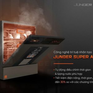 Sau mỗi chu trình rửa, hệ thống sấy nóng Junger Super Dry sẽ tận dụng nhiệt dư từ nước nóng kết hợp với quạt gió đối lưu để làm khô bát đĩa hiệu quả mà không cần mở cửa khoang máy. Điều này giúp hạn chế sự ngưng tụ hơi nước, giữ chén đĩa khô ráo, tránh ẩm mốc, đồng thời tiết kiệm năng lượng tối đa nhờ cơ chế tái tạo nhiệt thông minh.