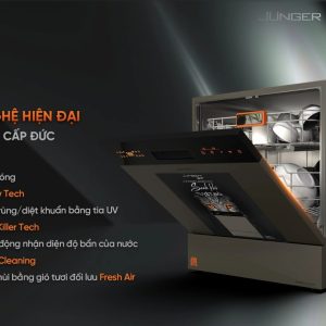 Máy rửa bát Junger Leopard không chỉ làm sạch mà còn tiệt trùng hiệu quả với công nghệ Junger UV Virus Killer Tech. Bát đĩa được rửa bằng nước nóng tới 75 độ C, kết hợp với tia UV giúp tiêu diệt tới 99,99% vi khuẩn. Ngoài ra, khử mùi bằng gió tươi đối lưu Fresh Air sẽ loại bỏ mọi mùi khó chịu, giúp chén bát sạch sẽ, thơm mát và an toàn cho trẻ nhỏ, người già và người nhạy cảm.