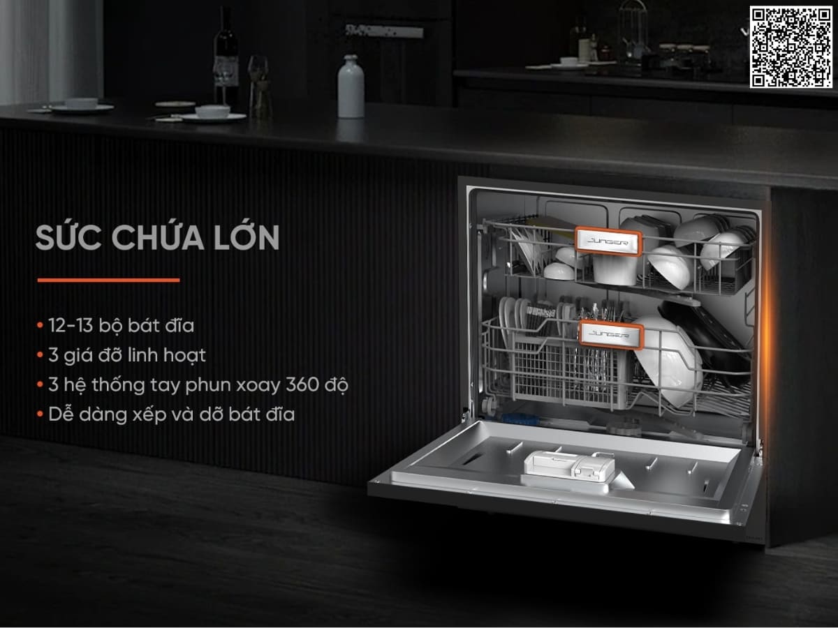 - Sấy khử khuẩn UV độc lập Junger 3D Hygiene Tech: Máy rửa bát hoạt động độc lập như một máy sấy bát chuyên sâu, khử khuẩn và lưu trữ chén bát hiệu quả.