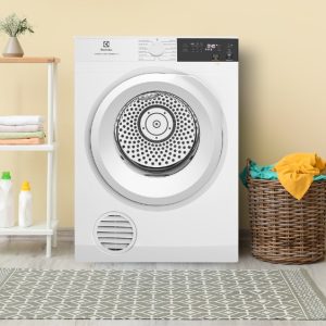 – Máy sấy quần áo Electrolux có thiết kế màu trắng tinh tế, sang trọng, phù hợp với nhiều không gian nội thất.