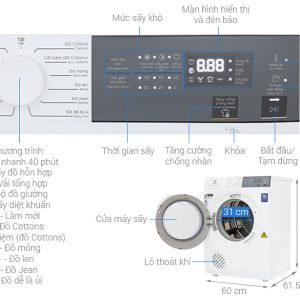 – Máy tích hợp đa dạng chương trình như sấy nhanh, đồ hỗn hợp, sấy chăn ga, đặc biệt có chế độ diệt khuẩn phù hợp với quần áo trẻ em hoặc người có làn da nhạy cảm. Các chế độ được tối ưu hóa để người dùng dễ dàng lựa chọn theo chất liệu và nhu cầu thực tế.