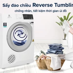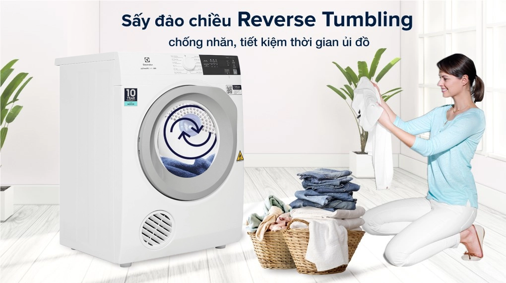 – Reverse Tumbling giúp quần áo xoay đảo chiều trong quá trình sấy, từ đó tránh xoắn rối và giảm nhăn hiệu quả.