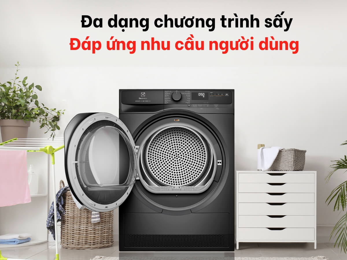 – Máy sấy bơm nhiệt Electrolux được tích hợp nhiều chương trình hoạt động phù hợp với đa dạng các loại quần áo.