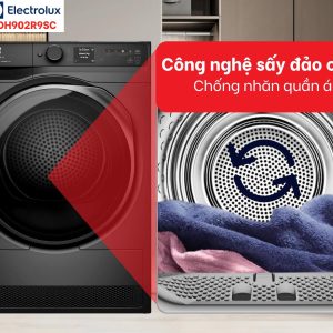 – Công nghệ sấy đảo chiều Reverse Tumbling có khả năng giúp chống nhăn trong quá trình sấy, quần áo được phân bổ, chuyển động liên tục bên trong máy, tránh tình trạng trang phục bị dồn lại một chỗ hoặc xoắn vào nhau. Công nghệ này giúp bảo vệ sợi vải tốt hơn, kéo dài tuổi thọ trang phục.
