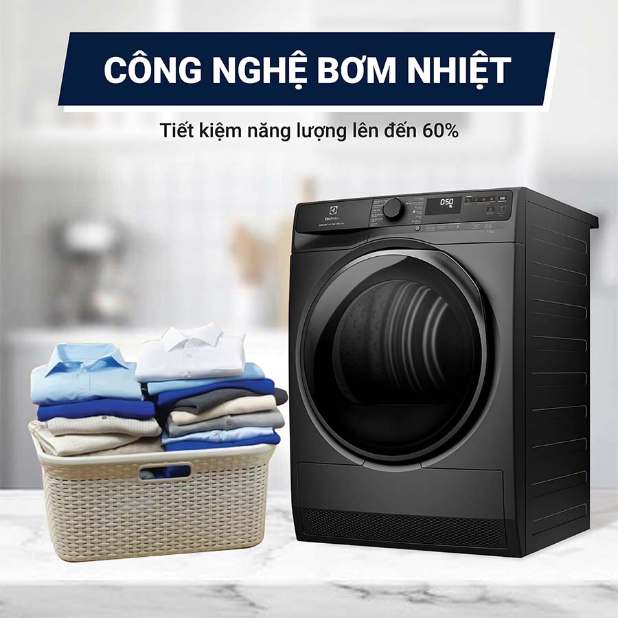 Máy sấy bơm nhiệt Electrolux UltimateCare 9 kg EDH903R7SC là lựa chọn phù hợp cho gia đình từ 3 đến 5 người. Máy sở hữu nhiều công nghệ hiện đại như SensiCare, cảm biến 3DSense, chế độ sấy diệt khuẩn Hygiene,… bảo vệ sợi vải tốt hơn. Bên cạnh đó, máy được trang bị công nghệ Inverter giúp tiết kiệm năng lượng hiệu quả.
