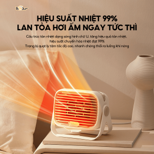 Không phải chờ đợi lâu! Chỉ trong 3 giây, Bear DNQ-E04Q1 đã có thể lan tỏa hơi ấm đều khắp không gian nhờ công nghệ sưởi gốm tiên tiến. Với hiệu suất nhiệt lên đến 99%, sản phẩm đảm bảo mang lại sự ấm áp nhanh chóng, giúp bạn tiết kiệm thời gian chờ đợi trong những ngày lạnh buốt.