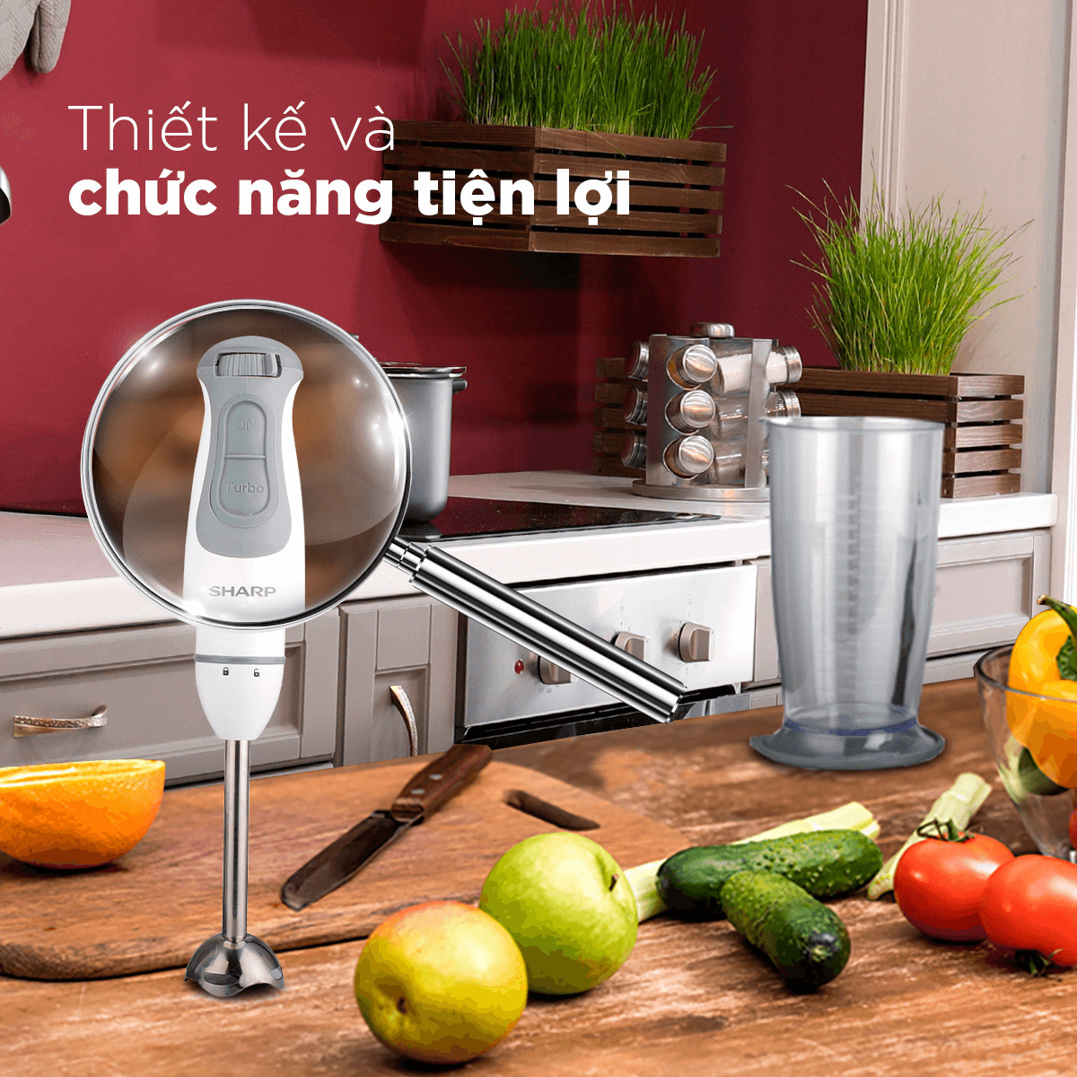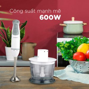 Máy xay cầm tay Sharp EM-H076SV-WH có thiết kế gọn nhẹ, kích thước 63mm x 398mm (Ngang x Cao), khối lượng 1.45kg, giúp bạn dễ dàng cầm nắm và thao tác máy trong thời gian dài mà không bị mỏi tay.