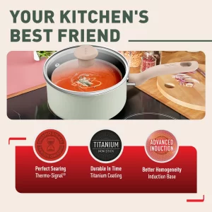 Được trang bị lớp chống dính Titanium cao cấp 5 lớp, nồi cán dài quánh Tefal So Matcha 18cm G1792395 mang lại độ bền vượt trội và an toàn cho sức khỏe nhờ không chứa các chất độc hại như PFOA. Với lớp phủ này, bạn có thể nấu ăn ít dầu mỡ, giúp món ăn trở nên lành mạnh hơn mà vẫn giữ được hương vị thơm ngon, mang đến trải nghiệm nấu nướng tuyệt vời. Đặc biệt, lớp chống dính được phủ từ trong ra ngoài, giúp cho việc vệ sinh nồi sau khi chế biến trở nên dễ dàng hơn.