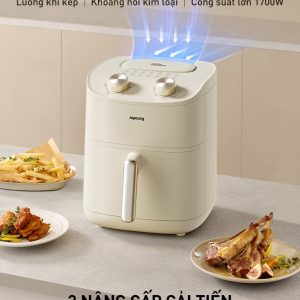 Với công suất mạnh mẽ lên đến 1700W, nồi chiên không dầu Joyoung JAF-612 mang đến khả năng nướng ở nhiệt độ cao, giúp thực phẩm chín nhanh, đều từ trong ra ngoài mà vẫn giữ trọn hương vị. Nhiệt lượng 200°C được duy trì ổn định và xuyên thấu sâu nhờ luồng khí lưu thông mạnh mẽ, hạn chế tình trạng bên ngoài cháy khét nhưng bên trong còn sống. Kết hợp cùng cánh quạt 11 cánh thiết kế dạng vây cá voi, lưu lượng gió được tăng cường, phân tán nhiệt đồng đều, giúp mọi món ăn đạt được độ chín vàng giòn hấp dẫn, giữ trọn dinh dưỡng và màu sắc tự nhiên.