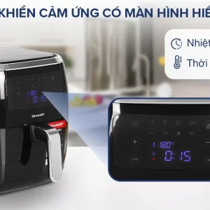 Sharp KF-AF68EPV-BK được trang bị màn hình thông minh hiển thị các thông số quan trọng như nhiệt độ, thời gian nấu. Đặc biệt, nồi chiên được trang bị điều khiển cảm ứng thông minh, dễ thao tác.