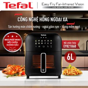 Nồi Chiên Không Dầu Tefal EY821868 được trang bị công nghệ Rapid Air, công suất 1550 – 1835W để làm chín thực phẩm đều và nhanh chóng, giảm lượng dầu mỡ so với phương pháp chiên truyền thống. Thiết bị có màn hình cảm ứng màu, dễ dàng thao tác và điều chỉnh 12 chương trình nấu cài sẵn. Cửa kính xuyên thấu cho phép bạn quan sát quá trình đồ ăn được nấu. Với dung tích 6 lít , đáp ứng nhu cầu nấu nướng của gia đình 4 – 6 người.