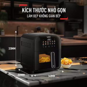 Nồi Chiên Không Dầu Tefal EY821868 với thiết kế hiện đại và kích thước nhỏ gọn không chỉ tiết kiệm không gian mà còn làm tăng tính thẩm mỹ, giúp gian bếp trở nên gọn gàng và sang trọng hơn.